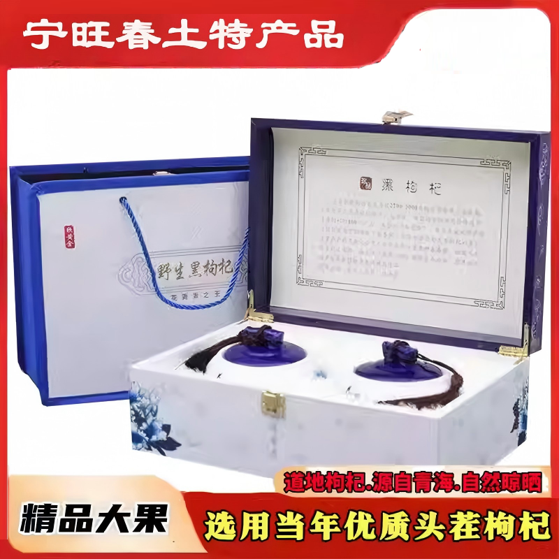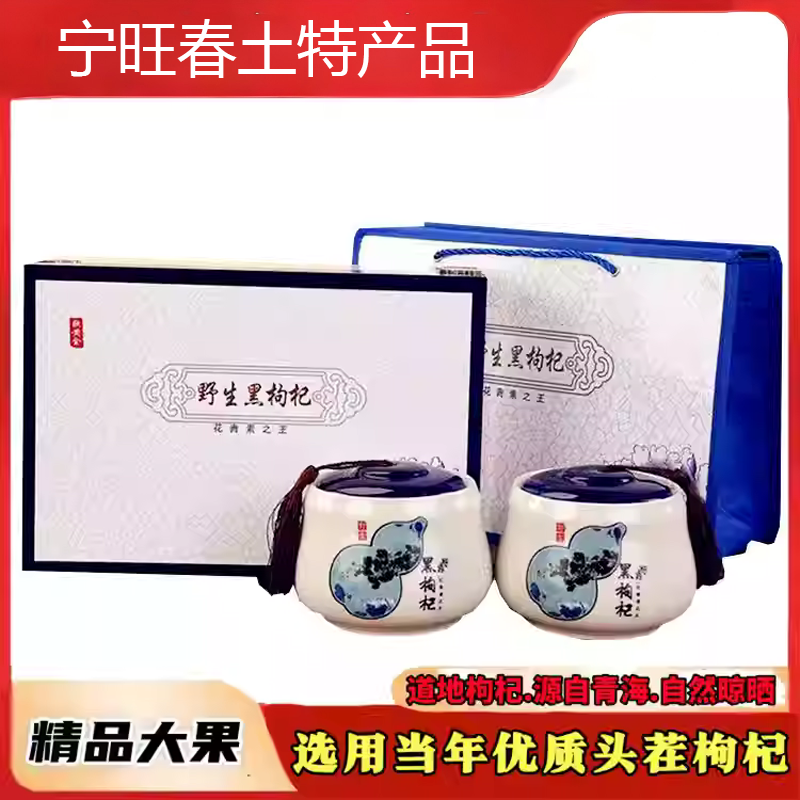 青海新货黑枸杞牛头果免洗非甘肃新疆货500g木质礼盒陶瓷灌装包邮