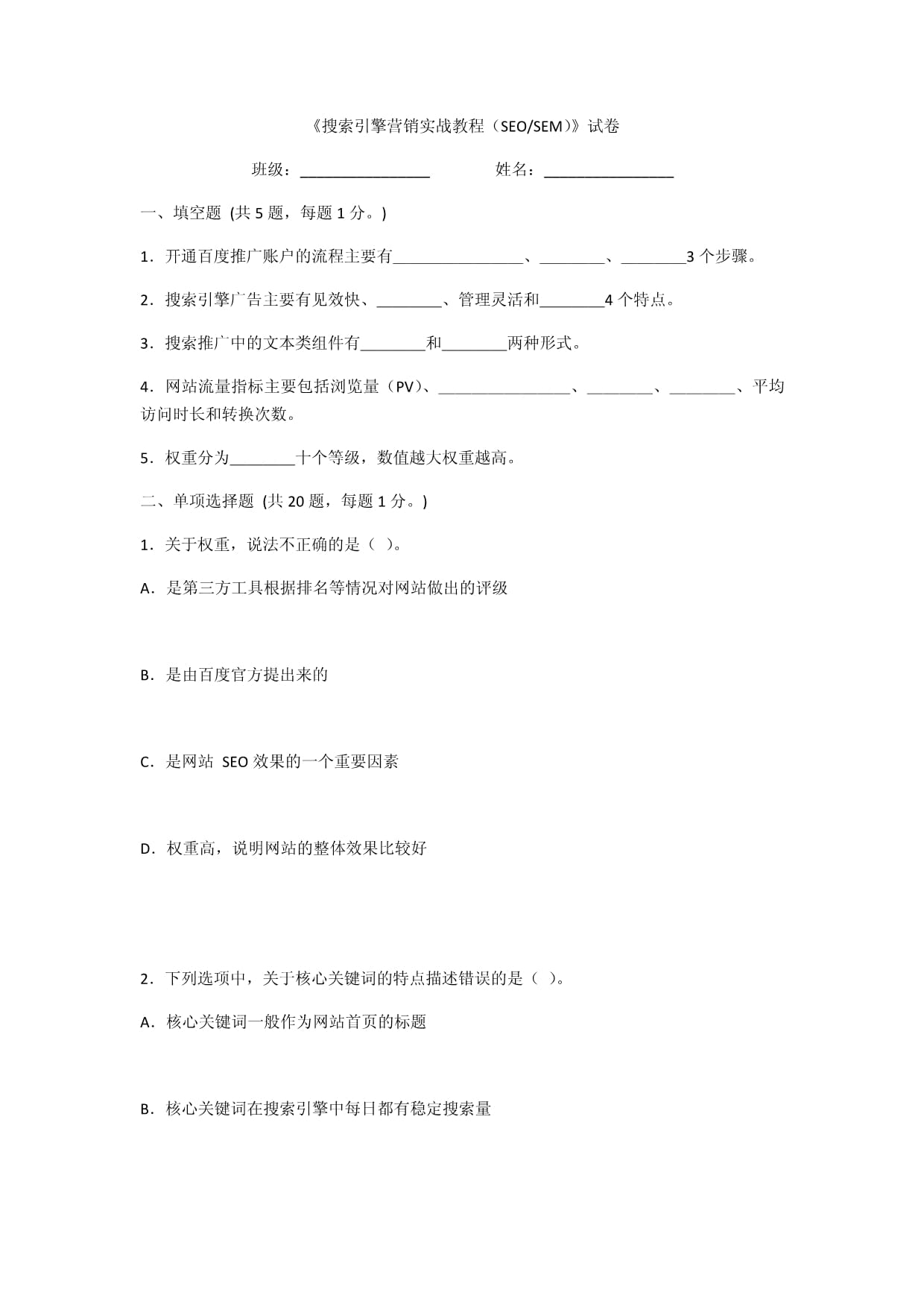 seo期末试题及答案
